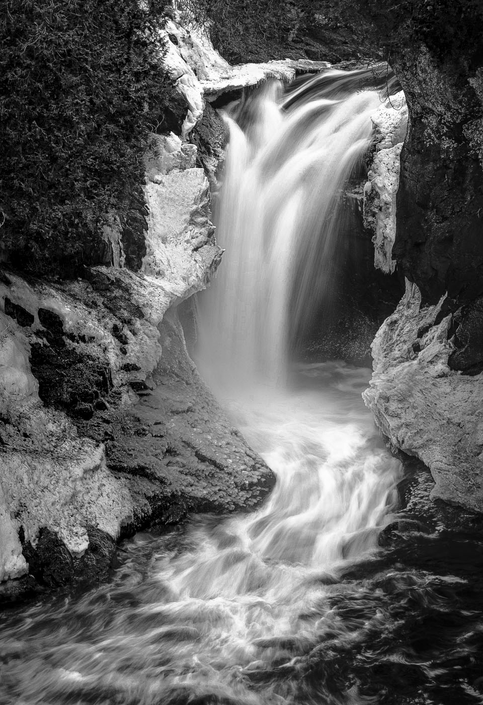 LuAnn,thank you for sharing this beautiful waterfall. I think your use of a slower shutter speed gives just the right amount of softness to the moving water and I like how my eye travels from lower left up along the river to the waterfall. So, compositionally speaking, I think this is a successful image. As a color image I was bothered by the muddiness in the waterfall and river and the overall lack of color interest in the scene. I thought perhaps it would work better in monochrome. I'm curious what you think of my edit. |