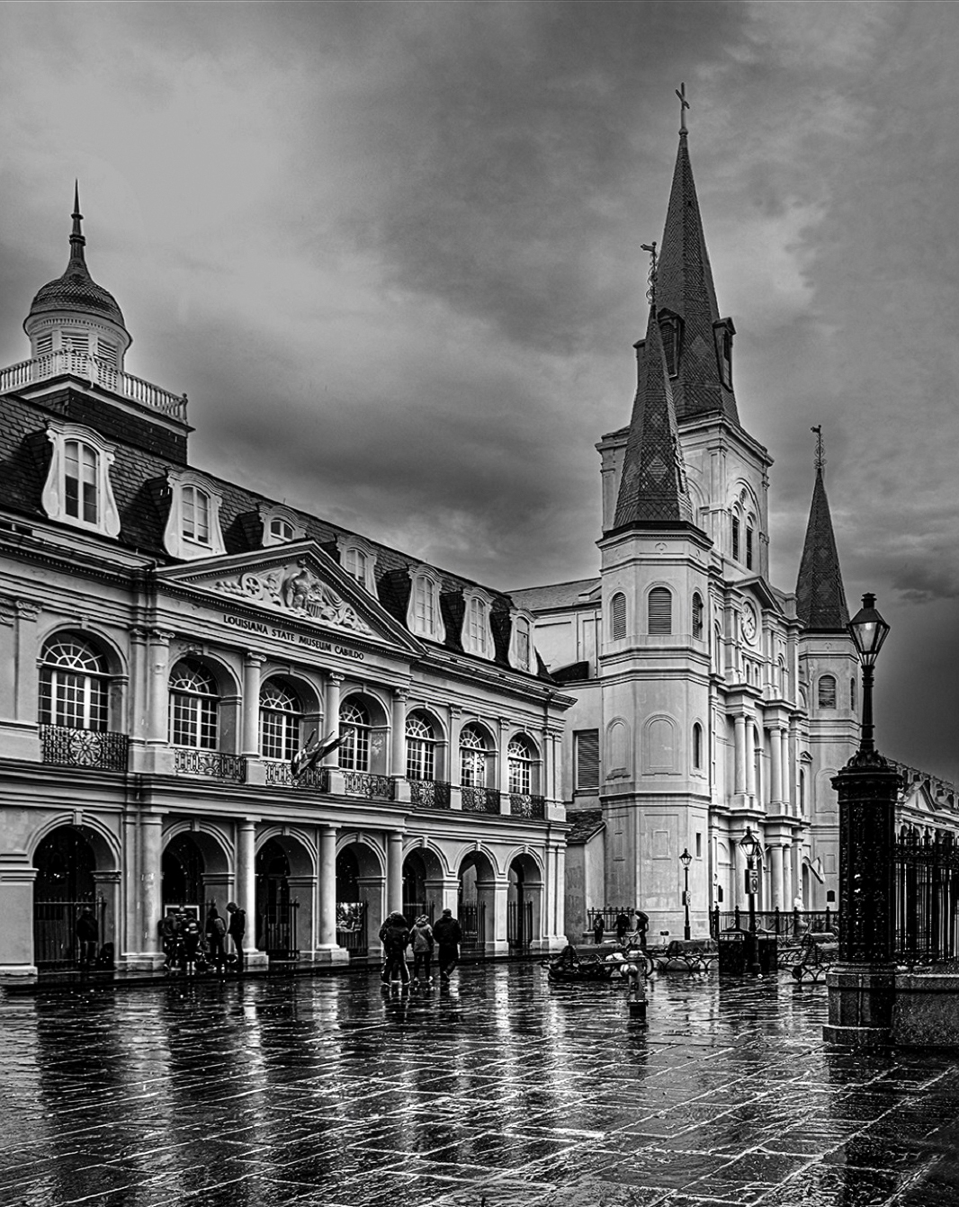 Hi John, and welcome to Group 3! Nice to have you on board. I echo what Bev and Ruth suggested and have some additional observations: The building is indeed interesting, but it really is fairly monochromatic. The use of the red sky replacement takes my eye away from the lovely detail in the building. Is the subject the building or the sky? Where do you want the viewer's eye to go? I also find myself wanting more space at the top of the image - i.e., more sky showing. For me, the crop is too tight up there. I periodically use sky replacements but am often vexed to determine from which direction the sky is being lit, as that factor can make or break the believability of the final image. In your original image, the light is coming from behind you, but your sky replacement has the light coming from behind the building. My suggestion would be to take color out of the equation and render it in B & W as per my edit example. I re-cropped the image to a 1:2 ratio and put the roof line on the upper third and the cupola on the top left third. I chose a different sky where (I hope!) the light is more congruent with the direction of the sun on the building. Lastly I increased sharpness and clarity to bring out some more detail on the building - hopefully making it clear that the building is the subject. Curious to hear what you think. |