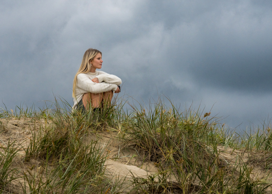 To my eye, I prefer the tones in your original image. Your presented image appears to me to be somewhat over-edited (something I'm frequently guilty of!). The woman's skin tones are off and in my opinion, the brightness of the foreground competes with your subject. LuAnn has already mentioned the dust spots and how to deal with them. For my visual feedback I took your image back into Ps and ACR where I selected the subject and brought up the exposure by 0.20. I used the brush in ACR to accentuate the shadows and contrast in the sweater. Rather than brightening up the entire foreground, I used the brush again to brush +highlights in only the exposed sand. I also brought up the saturation and luminance on the grass. Lastly, I added a bit more clarity and dehaze to the sky. I think the the sky is very important to the feeling I get when I look at your image. It makes a nice backdrop and enhances the moodiness of the scene. Thanks for sharing this beautiful candid moment. |