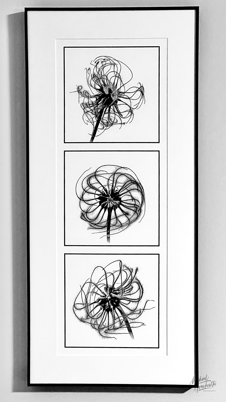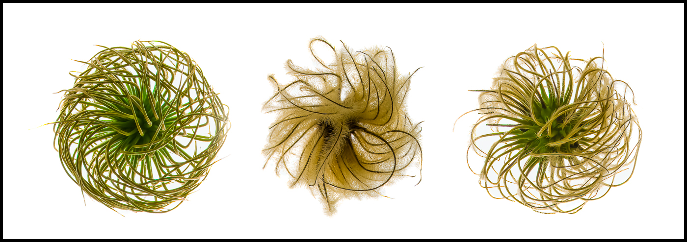 Hi Joan. Thank you for your kind comments and suggestions! I've taken many images of clematis seed pods from the many varieties I grow. Earlier this year I did a monochrome triptych. I presented a horizontal format for print night at my camera club and I printed a vertical version that I framed and hangs on my wall (see attached). |