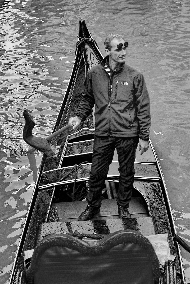 Hi Kathleen. Thank you for sharing your gondolier photo with us. They certainly do make great subjects. I agree with your choice to render this in mono, as the two splashes of color in your original are indeed distracting. Your image is in sharp focus and I enjoyed looking at all the details of the boat. In all honesty, I have to say that your crop and sepia toning don't work well for me. Because your subject is the gondolier, the inclusion of the moored boat on the left, in my view, takes attention away from the main subject. Because his gondola is a deep, rich, shiny black, I feel the sepia toning diminishes the wonderful contrast in the scene and also accentuates the over-exposed highlights. Please consider my attached visual feedback as an alternative way to present your gondolier. For my edit, I cropped out the moored boat entirely and allowed the sun reflection to become a nice leading line. I rendered the conversion in neutral tones, reduced overall highlights, increased blacks, increased exposure on the gondola and gondolier while decreasing the exposure on the water for more separation. |
