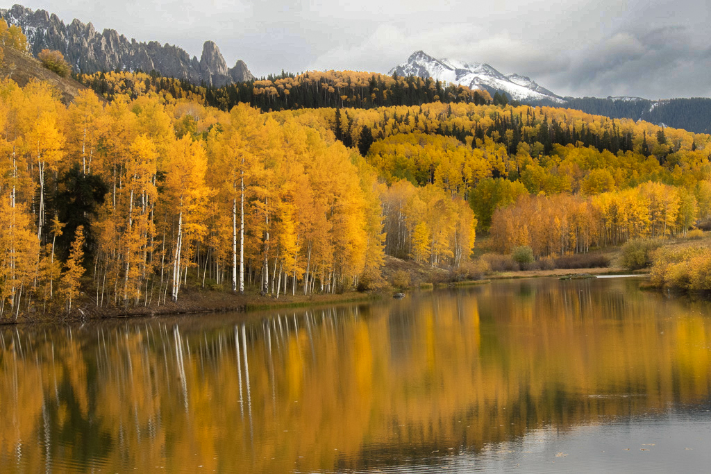 Hi Ruth. You are so fortunate to live in an area of the country with such amazing fall color! It's kinda boring here in Washington by comparison! First off, I love your composition. I think you have a nice balance of water/reflection, trees and mountains/sky and your sky edit adds drama. You've captured well the majesty of the Rockies in Autumn and the image gives me a feeling of both calm and awe. It's very beautiful and I enjoyed it very much.