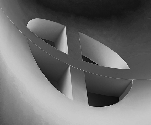 Hi Joan. Well, to put it bluntly: I disagree completely with the CC judge! I love your image and I appreciate your creative process, as I often do the same. I like your camera angle - it gives a pleasing perspective and the square crop is perfect. I love the duo-tonality you've created and IMO, it is perfect as is - a lovely architectural image. I wouldn't change a thing. I did think it might work equally as well in monochrome... but after doing the conversion, I think your color version is better. |
