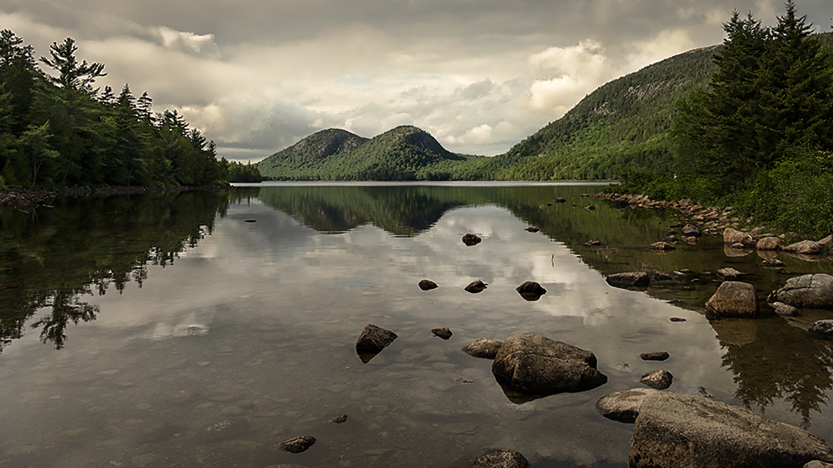 2. In your original, the sky was brighter than the sky reflection (natural looking) but your edit has reversed that, leaving multiple distracting "hot spots". The pile of logs at the left of the frame have the same issue. Fortunately, because your original exposure was spot on, these issues are easy to fix.