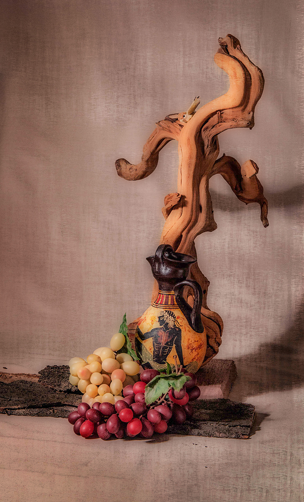 Then I darkened all around and especially at the base, just using the Burn tool. I left it lighter nearer the still life to make it stand out better, instead of the lighting to be the same everywhere.