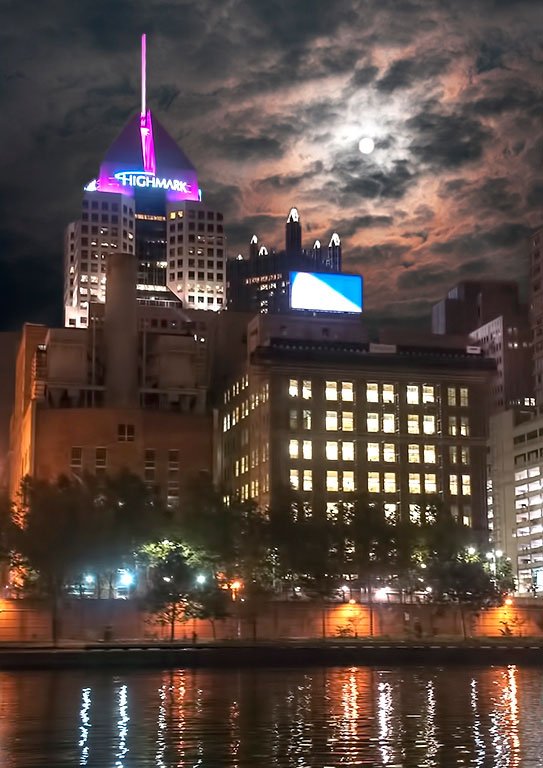 "Your" rectangles are emphasized so well by being lit-up windows. I think the reflection "makes" the photo. I had to take up the challenge of putting in a new sky! I tried just a full moon, but that didn't work for me. The cloudy sky I finally chose is probably too busy and therefore distracting from the many details of your image. But here it is, anyway! |