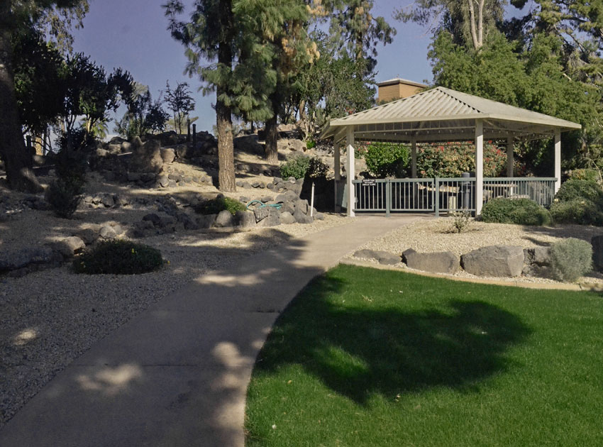 You are giving us "nice" weather! Feels strange here in the freezing mid-west. I like the curving path to the gazebo. I liked your image the way you had it, but when I read the other comments, I decided to see what would happen if I added warmth with the color temperature and cropped. Then I fiddled with Clarity, Vibrance, Highlights, Whites, the various colors. Because I was using the Camera Raw filter in Photoshop, I could deal with individual colors, so I removed the purple in the sidewalk and decreased the luminance of the green (grass) and blue (sky) to darken them a little. Was aiming to make the gazebo more of the main subject. Can you see any difference from the original? It should be fairly subtle. |
