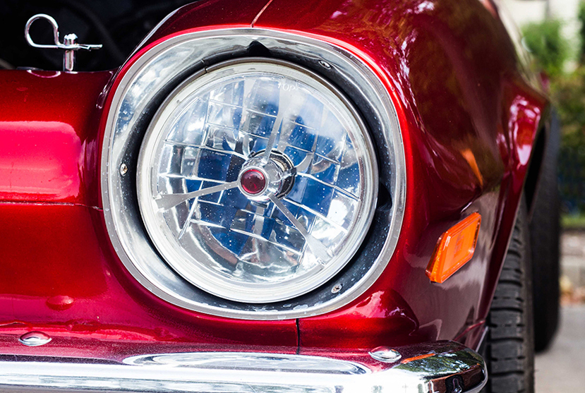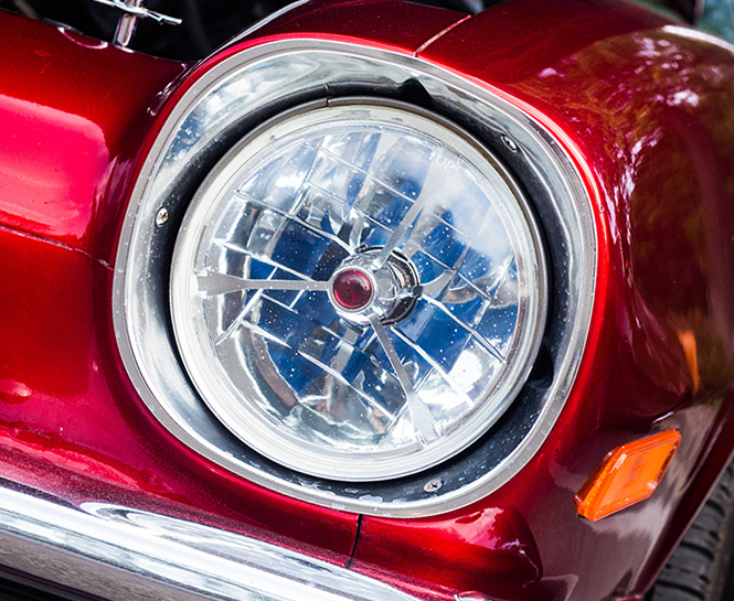 Car shows are full of geometric shapes! Cars are fascinating because of their shapes! I find the right side of the image to be distracting because of the bright areas (as well as the mundane aspect of being "just" a driveway). As the saying goes, if it doesn't add to the picture, then don't put it in the picture. So here are a couple cropping ideas. |