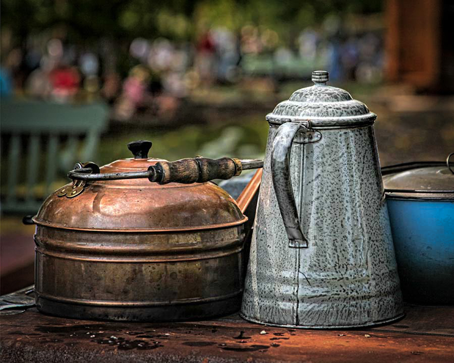 The kettles are especially interesting to look at due to their texture and markings. That bokeh background looks great! I know how hard it is to get a non-distracting background at festivals like this. The only suggestion I have for these situations is to apply a custom vignette and also selectively darken any unwanted bright areas. So I made you a sample pic... |