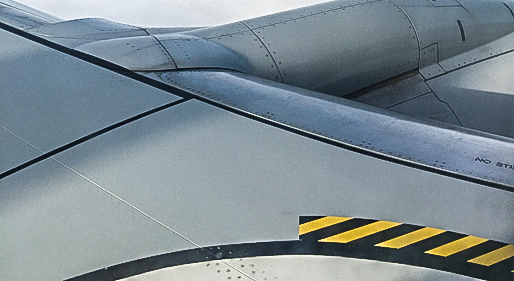 I found the yellow and black striped area to be the unique, striking element of your airplane window shot. So I cropped your image to include it. Then I saw the unusual light-colored and curvy shape appear at both the top and bottom of the picture. Edited the tonal values a little bit. Now I've changed your original "motion in the sky" to a graphic look with shapes and curves, and I hope you don't mind! It's a different version of your original. |