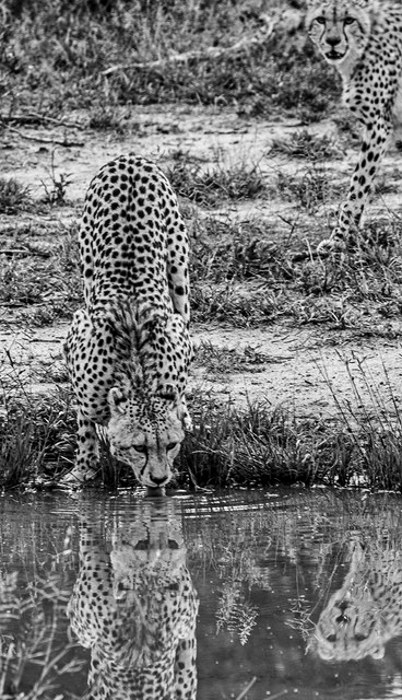You found a pair of animals with a pair of their reflections...so you doubled the assigned subject! I think that's first for this group! It is too bad that the cheetah in the corner got cut off a little. I think when I cropped your image, it doesn't seem to matter so much. I also added more contrast to the image to make the spots stand out more (I think, anyway!). |