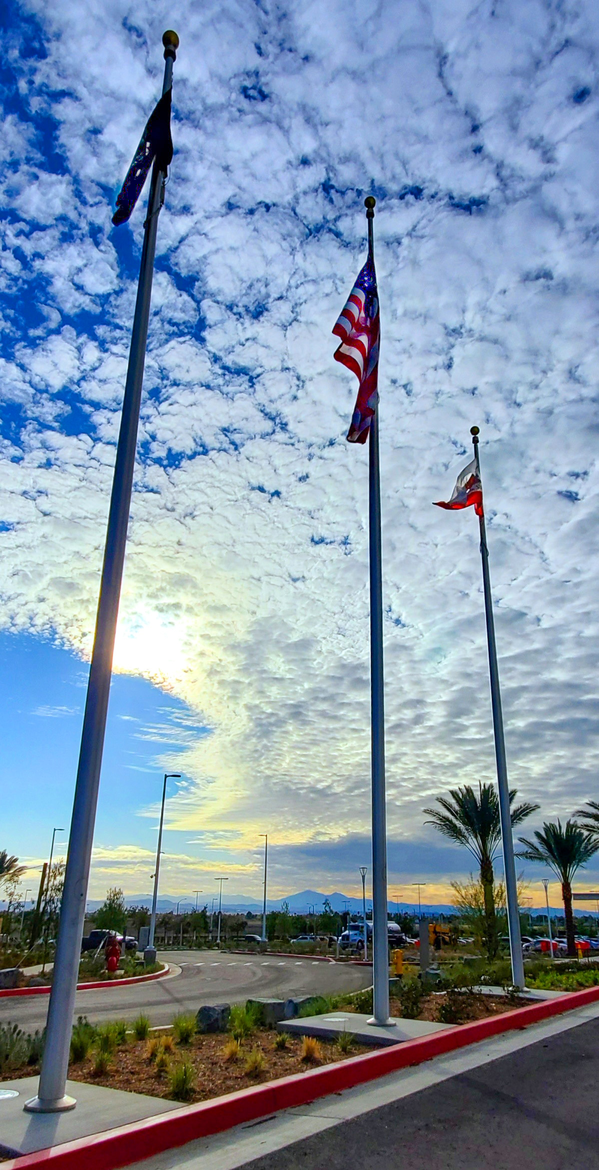 I feel the USA flag in the middle looks most important despite no wind, so I'm not as disappointed as you! And I'm impressed by the sunset you found behind the flagpoles. I took your photo into Photoshop and edited to emphasize the flags and sunset. The colors may be a little extreme, but that seems to be a popular trend these days. So here it is! |