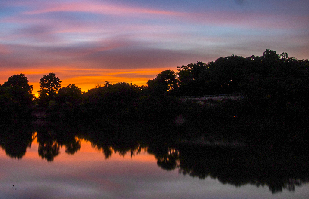 How interesting that this is such a long exposure! I wouldn't have thought to do that at dusk. I like the calm feeling and serene colors. I think the amount of sky sets off the tree silhouette well. If this were my photo, I would edit the sky and sun to be more vibrant although I know less realistic. It seems that photographers nowadays enhance their colors a little on the unrealistic side! I don't like the untruth but I like the look! I tried not to go overboard in my edited example. Did it look sort of like this in person? |
