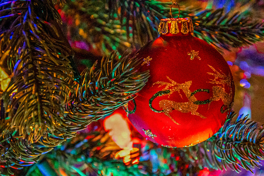 I love your red ornament with the reindeer! Christmas trees give us many opportunities to take interesting and memorable photos. I wanted to see the reindeer better, so I tried the Auto exposure in Lightroom and then brightened the reds, yellows, and oranges in the color sliders. Wish this was MY tree! Beautiful! |