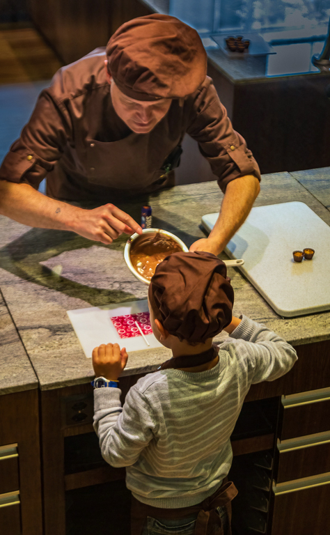 Chocolate does smell so good! I love the story your photo tells. When I look at your photo with my hand blocking off the white cutting board at our left, I find the 2 little chocolates on the right pop out and make the photo say "chocolate" even more. Regarding the bright areas in the background, my current solution for such problems is to darken them with a brush in either Photoshop's RAW filter or Lightroom. |