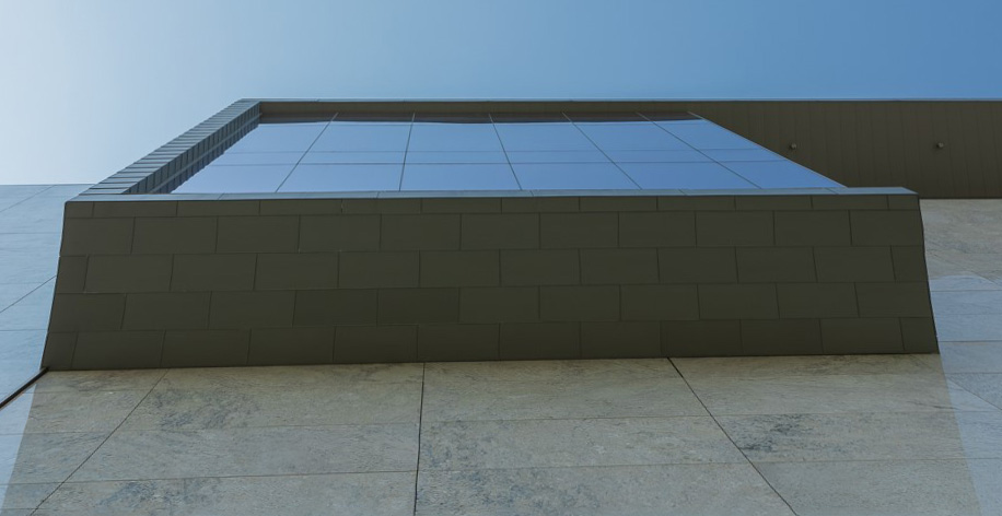 Optical illusion! Look at the side of the building underneath the black protruding section and starting thinking of it as a light gray marble floor. Once your brain sees it as a floor, the black area will appear as a bench sitting flat on it. I love optical illusions. You made one! |
