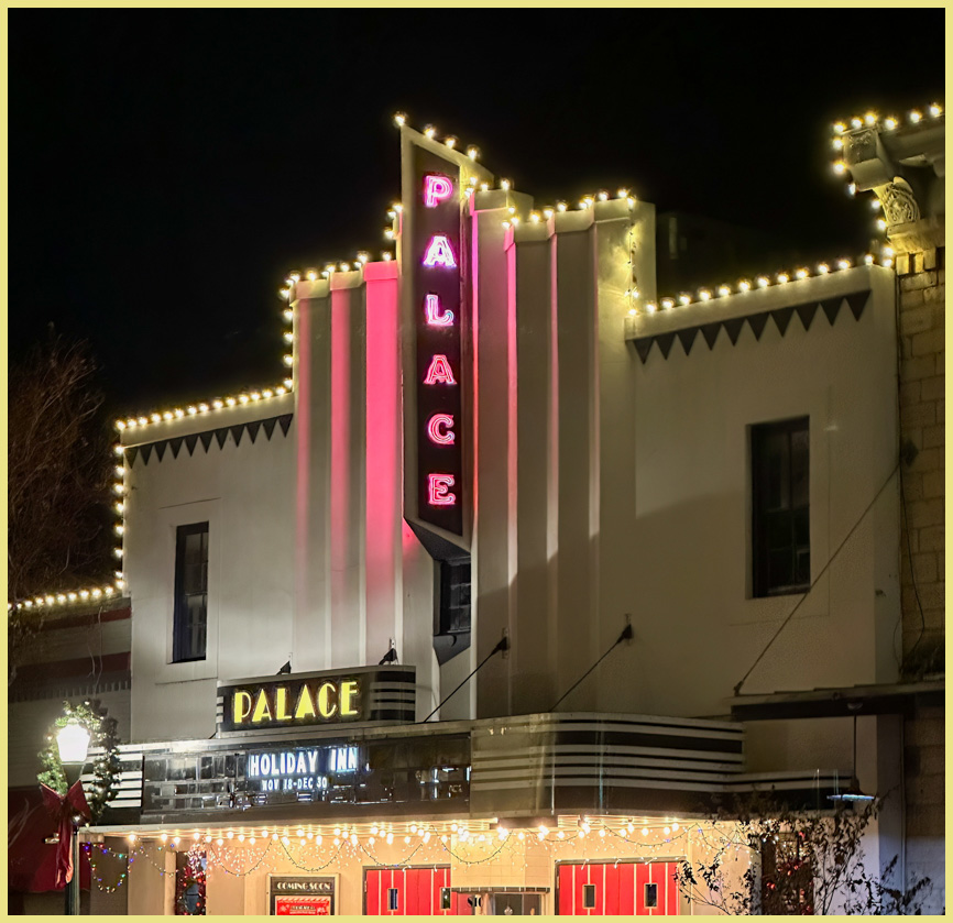 I can feel the old-time nature of the theater's architecture. Love the lights and the special look they give the building. Your camera settings have captured all the lights well so that I can look at the building's details. I feel this is like a live shot. The cars add to the story by being something new in the photo of something old. On the other hand, you have a good architecture picture and a different storyline without the cars. |