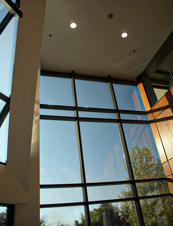 I think the "window architect" would be pleased that you noticed the grandeur and design pattern of these windows. I can feel the expanse of the room. The reflections of the ceiling lights are distracting to me, and it was a quick rubber stamp to get rid of them. When I was making my edit, I played around with the sliders in Photoshop Camera Raw filter and found that extra reflection of the interior wall on the right. I think it was the Clarity slider that made it appear. To me, it adds another element of architecture without being distracting. I finished with Auto Levels and liked the less yellow effect. |