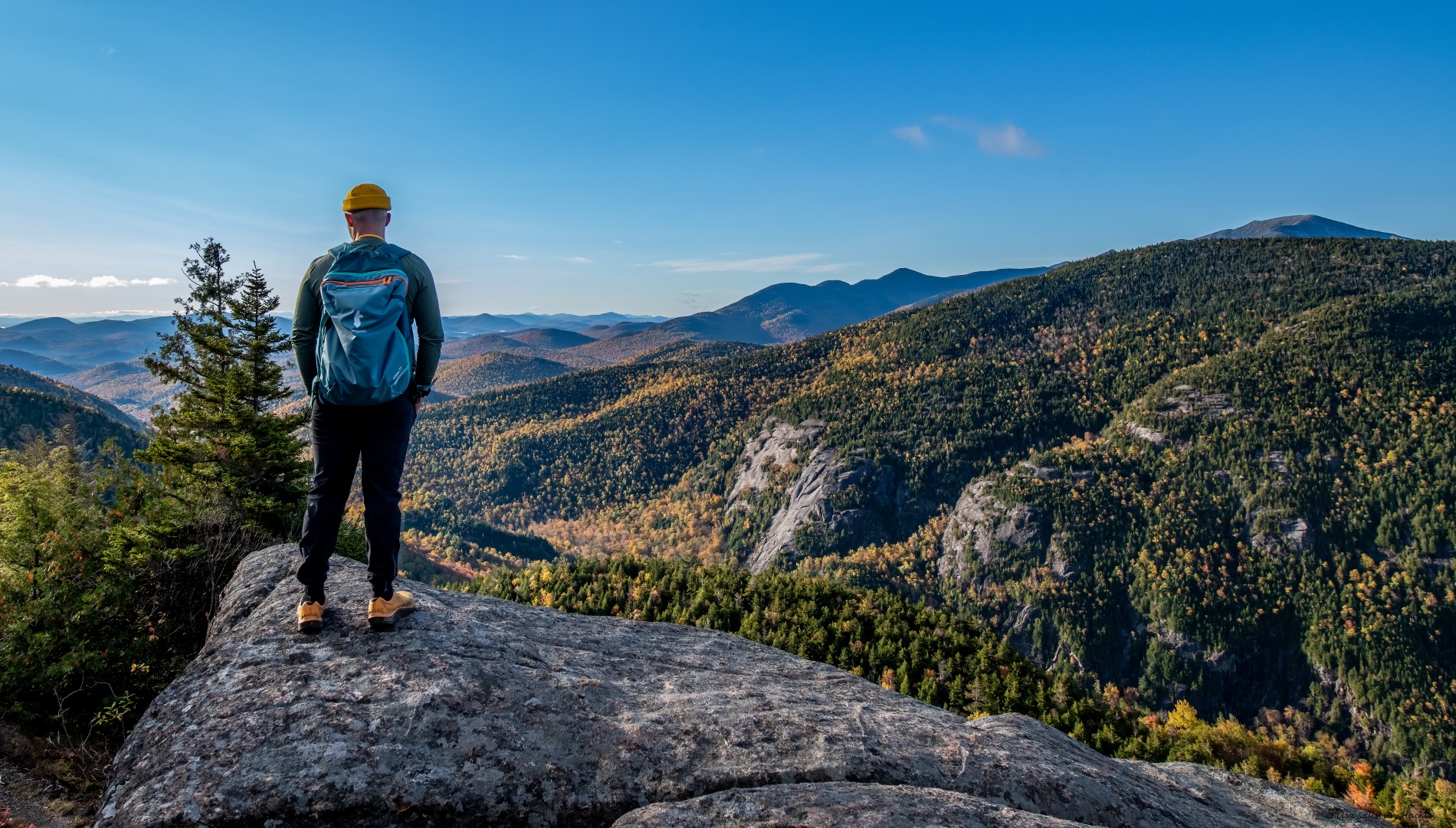 This is one of many images that I captured last fall when hiking with my son in the High Peaks region in Keene Valley, New York. Using my son as the primary subject in the foreground, the background was intended to provide context while portraying the scope, scale, and beauty of the high peaks region. This is one of my favorites out of the group. I have included two other images taken in different spots with a different perspective. |