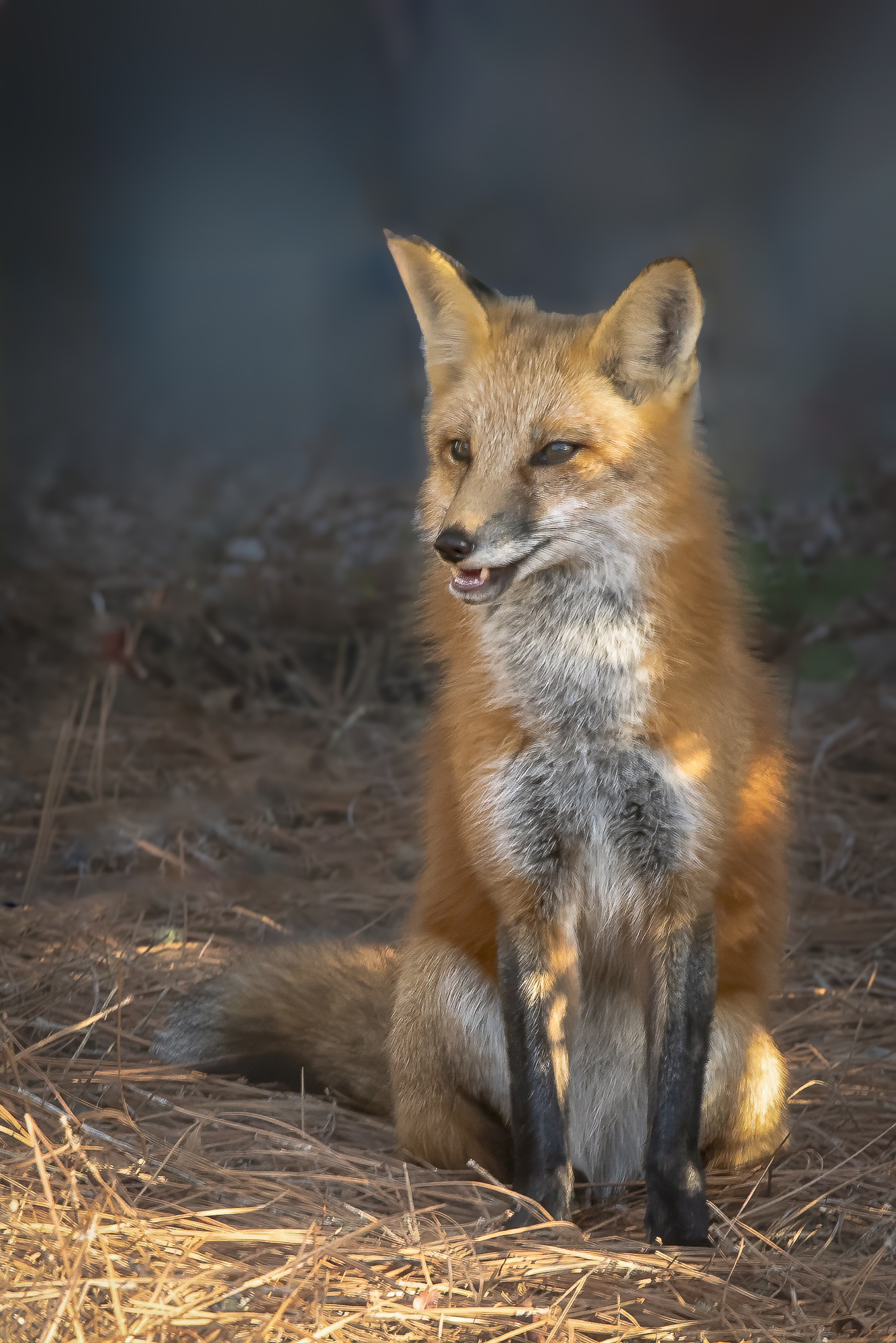 Hi Richard, I'm very envious. I have been trying to capture a red fox in its winter coat my entire life and have yet to do so. I love your fox image. I just don't like all the distractions around it. I took the liberty of playing with it in LRC. I removed the branches and worked a little with the new Lens Blur feature to blur the surroundings and sharpen the fox. I also lightened the eyes just a bit. |
