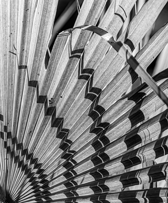 I did do a quick-and dirty conversion of my palm frond into B&W. I do like it and the additional contrast it presents.