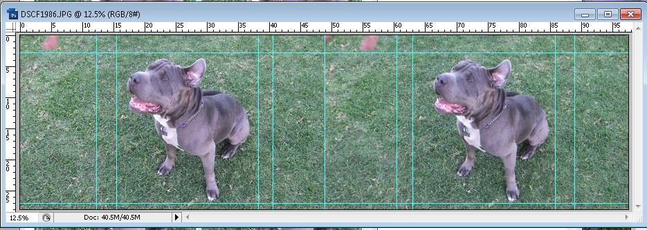 I just uploaded an image of how the guide lines would look for this image. This is a right-left image. I lay out guidelines for the right on image (the one on the left), and then cross-eye view and pull guide lines to approximately match for the left eye image (the one on the right). Then I duplicate the image, lay them side by side, and zoom in to 200% to match up blades of grass in the corners.