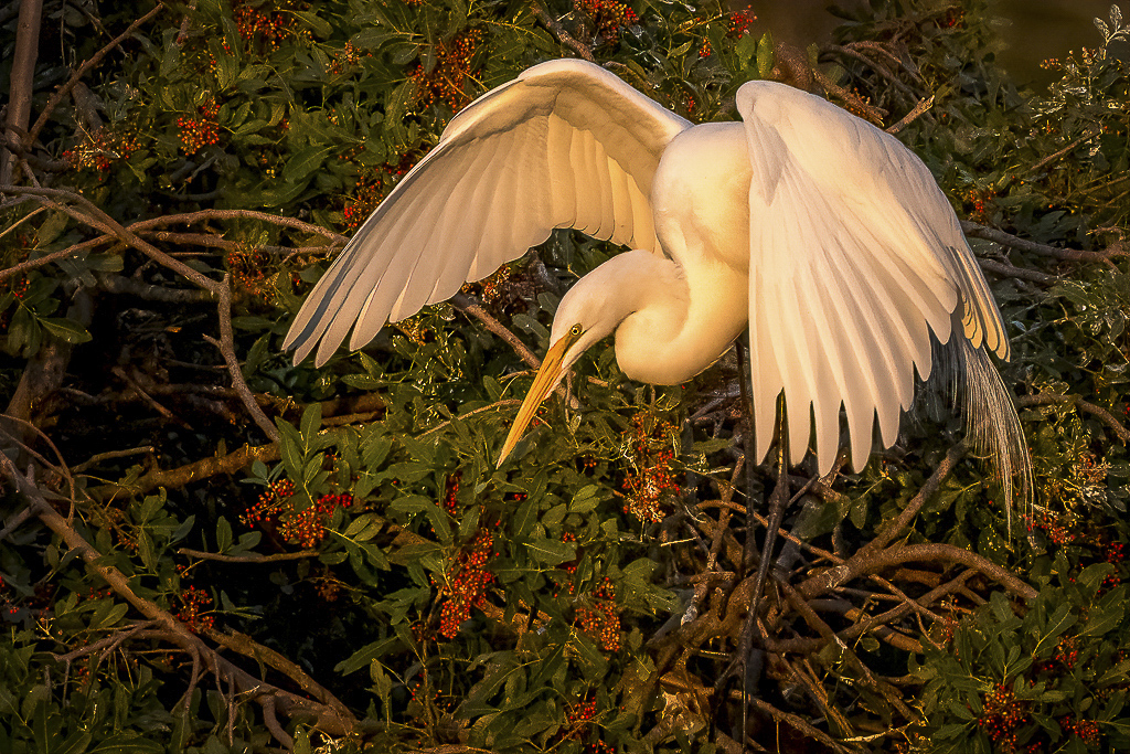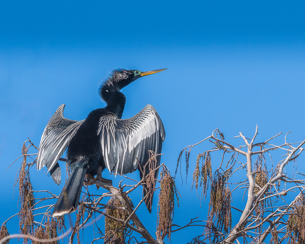 Over here on the West Coast, we have a lot of glossy Ibis, but not usually nesting birds. You are able to show many of the colors here; the youngster will get more color as he grows. I have that camera and lens and sometimes its a bit too much. Come back again in winter. |
