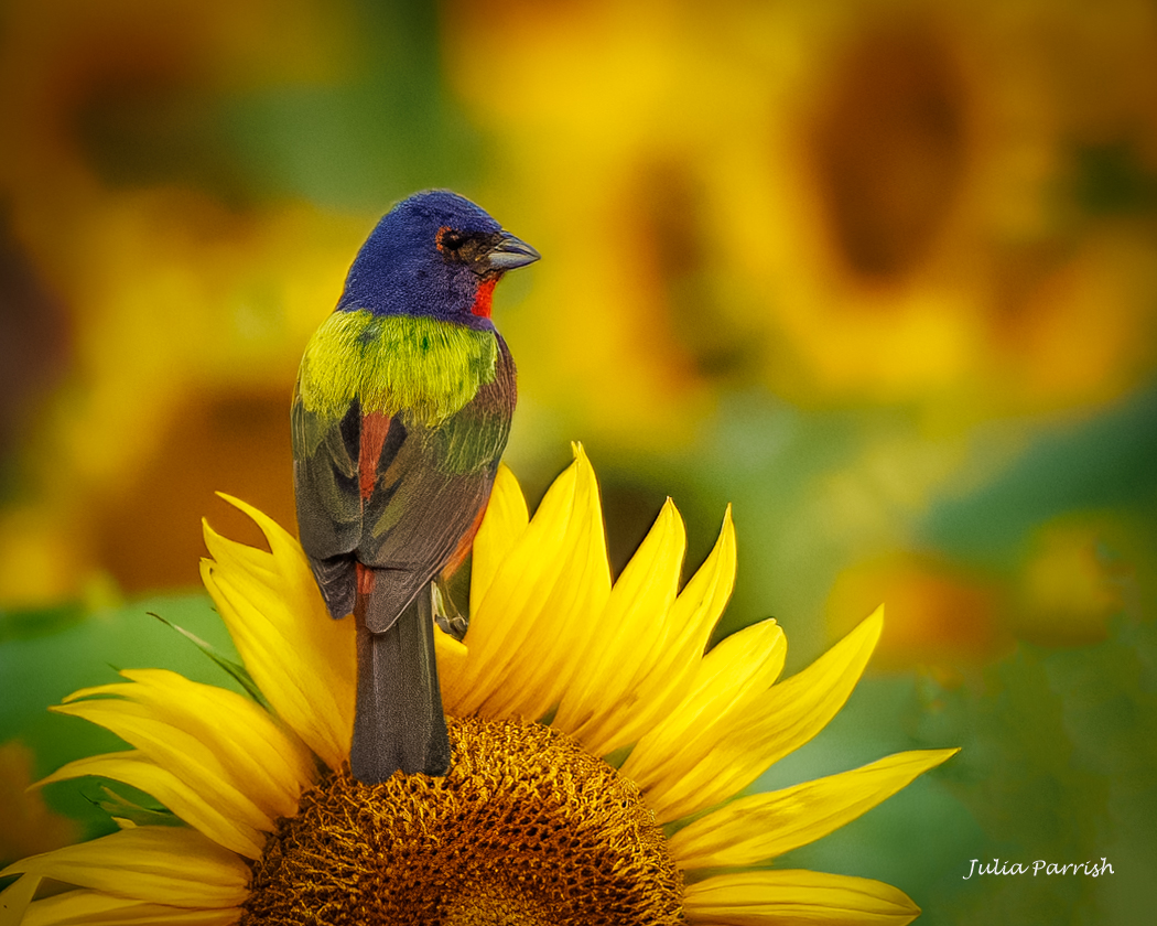 Thank you! No fancy editing - I did very little to this photo - it was taken at 1/1000 sec - F8 - 260 mm with my 100-400 lens so he was fairly close to me and I think the greenery in the distance was far enough away to create the bokeh. |