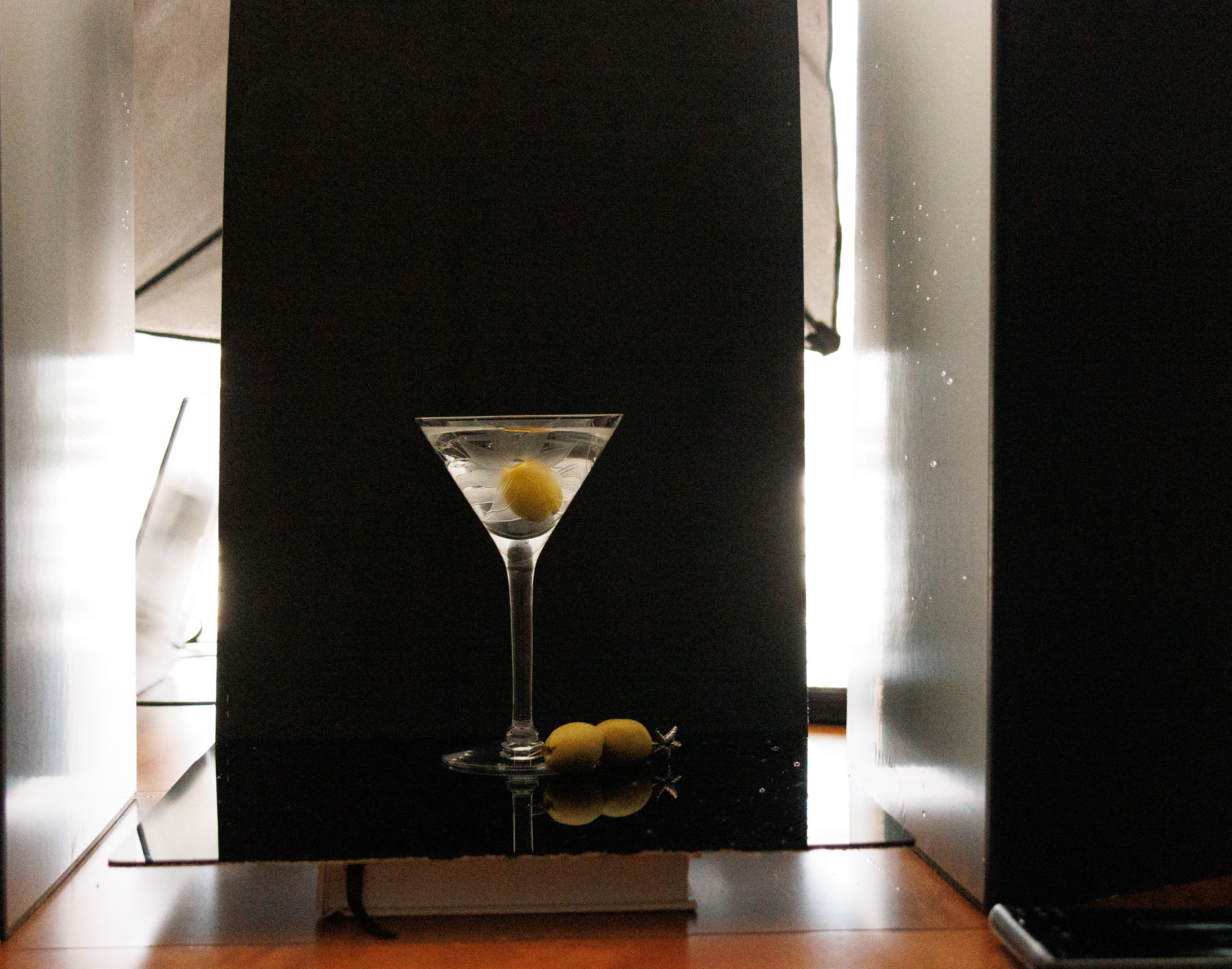 Jill, I am glad I had a photo that showed the setup - I am attaching it. I had a light softbox in the back, a black background board, 2 silver reflectors on the sides and a reflective black board under the glass. It was just a trial and error attempt with lots of takes to get the right splash. |