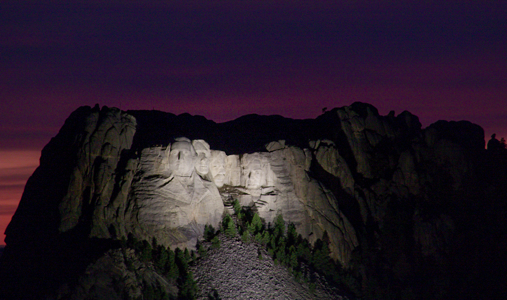Darcy, my apologies! I only just realized that I'd never actually posted my comments. It's a striking image, and well done overall. You weren't helped at all by the harsh artificial lighting, but you did well in spite of it. I really like the very late twilight purples, too. the framing works very well, placing the sculpture slightly off center. My initial thoughts were that there was too much extraneous mountain on the right, but on further reflection I think it serves to set the story in context. So often we see only the faces, and don't grasp the scale of the setting.