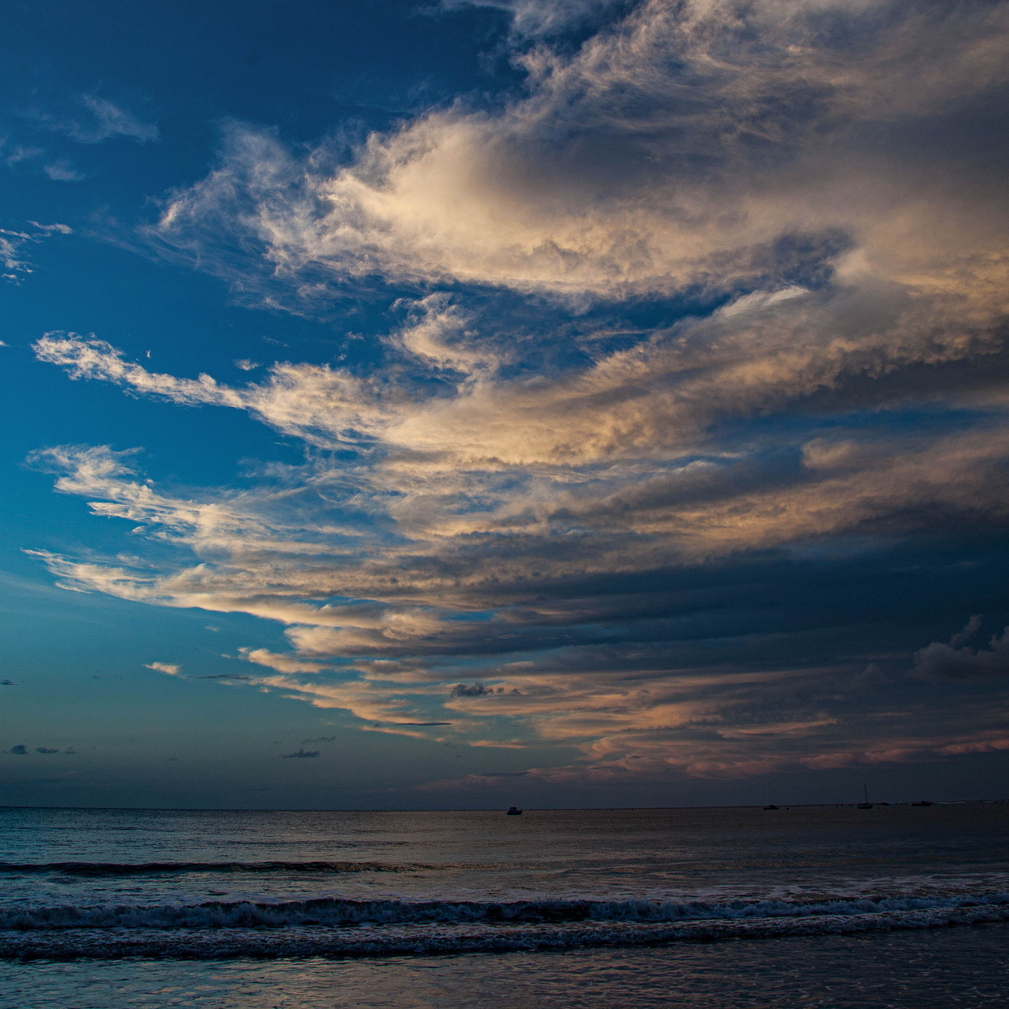 Images that are comprised solely of sky and water are, I find, extremely difficult to make compelling. I think it helps if one can establish a sense of depth. and to try to convey a "you-are-there" sense. One way to achieve this is to pay attention to the markers that give our eyes and brain clues as to relative distance. This can be done in the water by accentuating texture of close and de-emphasizing it near the horizon. Something similar can be done in the sky, and with this particular image I think doing as much pays off.