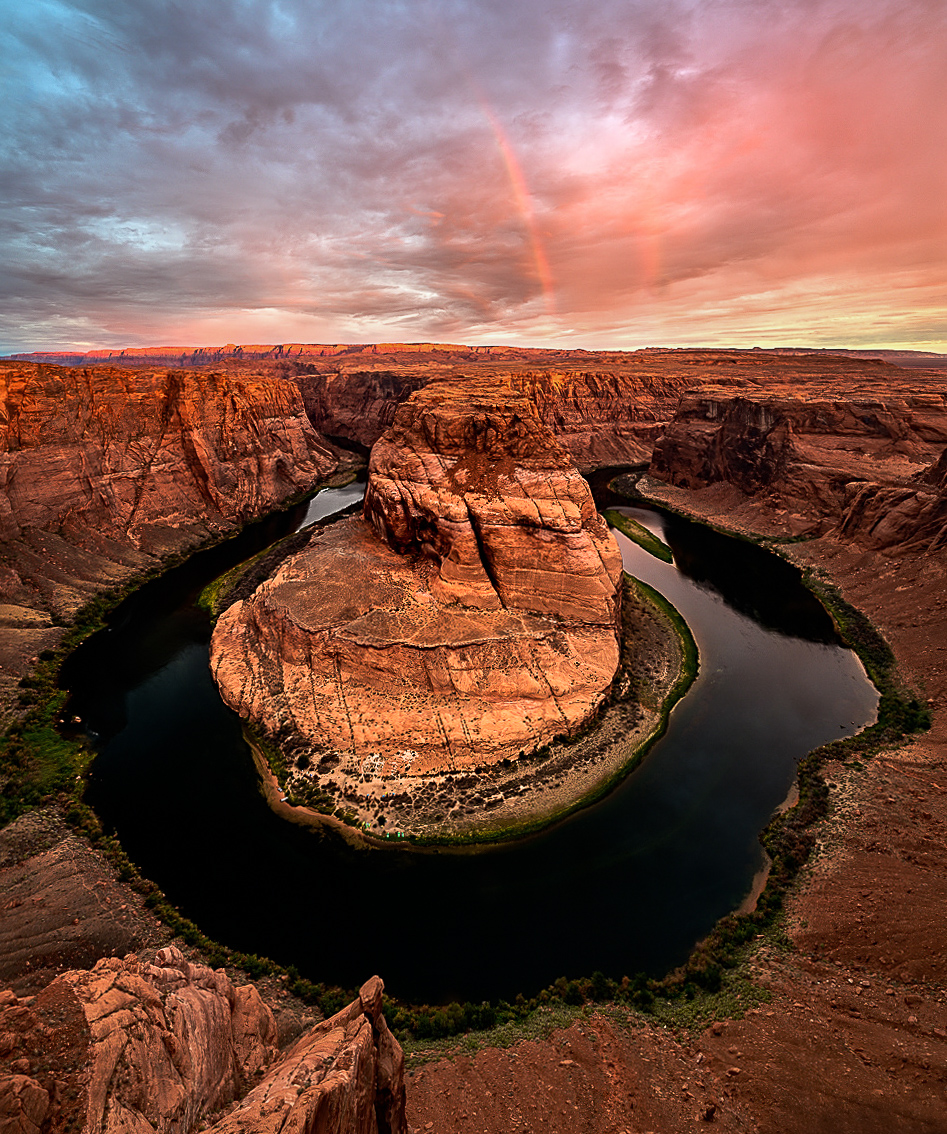 Neil, Dawn, I suspect that's a lens flare. For a rainbow to manifest, one would need the Sun to be bouncing off atmospheric water droplets in the direction of the rainbow, and all indications are that there were none.