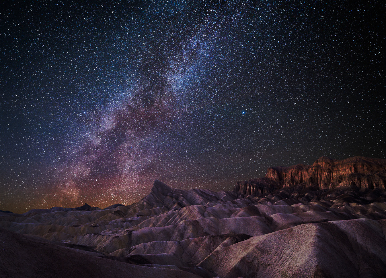 I find that there is much that is a matter of taste when it comes to processing a night-sky landscape image. Some folks prefer warmer hues, others prefer cooler. Some like a bit more clarity, especially in the details of the MW, others feel that thsat's going too far. Some folks opt to reduce the number of small pinpoint stars, so as to give more subjective weight to the few that remain; others like the billions-and-billions look. I don't believe there's a right or wrong preference, so long as the result feels internally consistent and the viewer doesn't end up questioning whether they've been manipulated by the maker.