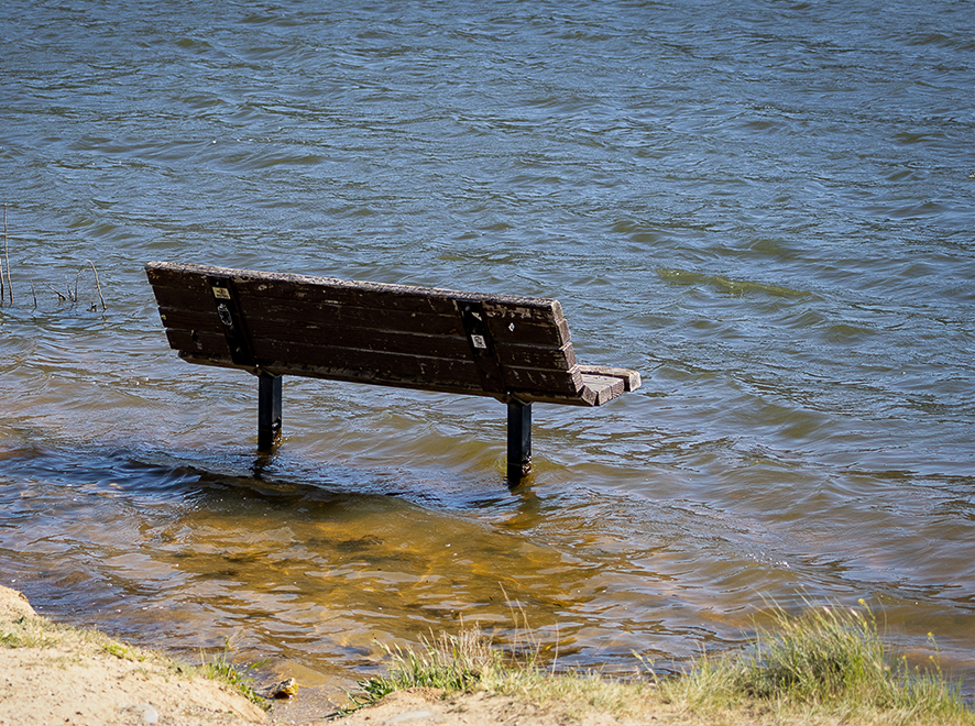 You might consider cropping oin a bit further from the left, to convey a stronger sense of looking into the frame, which in turn (in my opinion) elevates a story about what is missing (an occupant on the bench). |