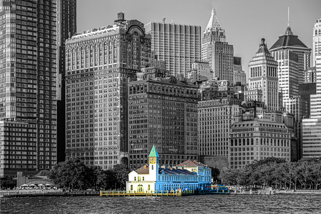 Interesting shot and great find. What about doing a selective monochrome conversion of just the pier building/structure, leaving the more modern buildings in color (or vice versa)? |