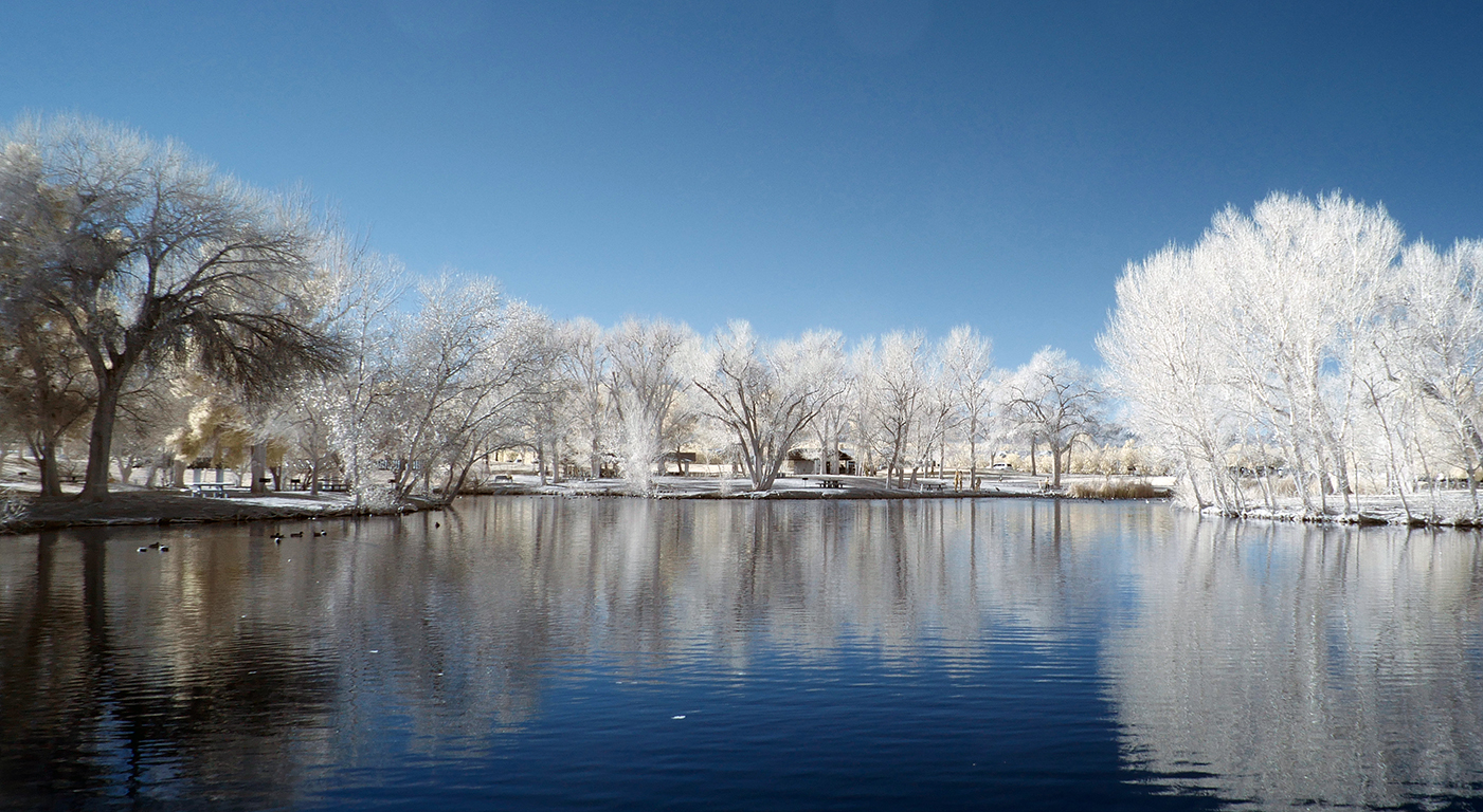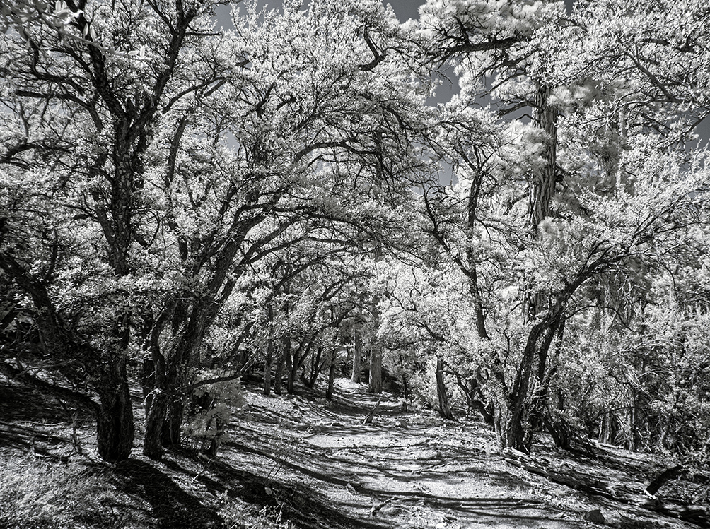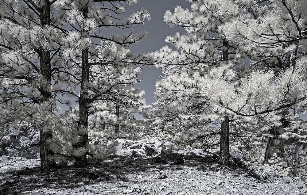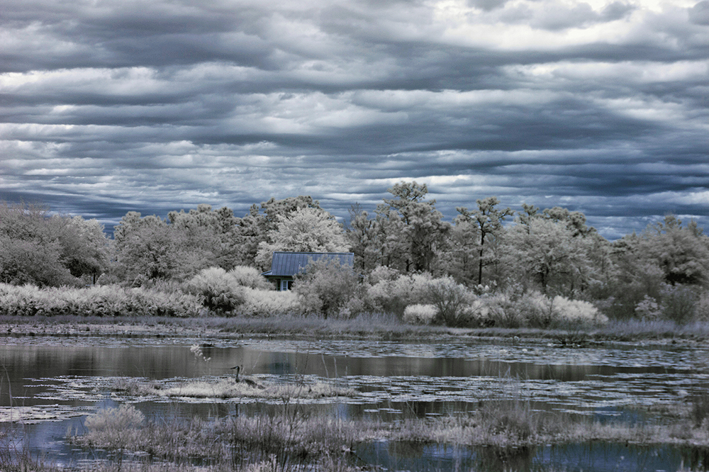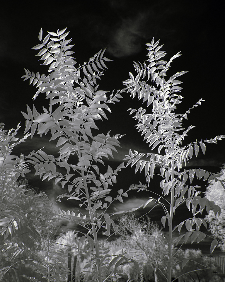 A very futuristic impression of the image. At first I did not like it, but over the last week it has grown on me and I now find it quite appealing. Perhaps you've uncovered a new procedural technique for IR processing. |