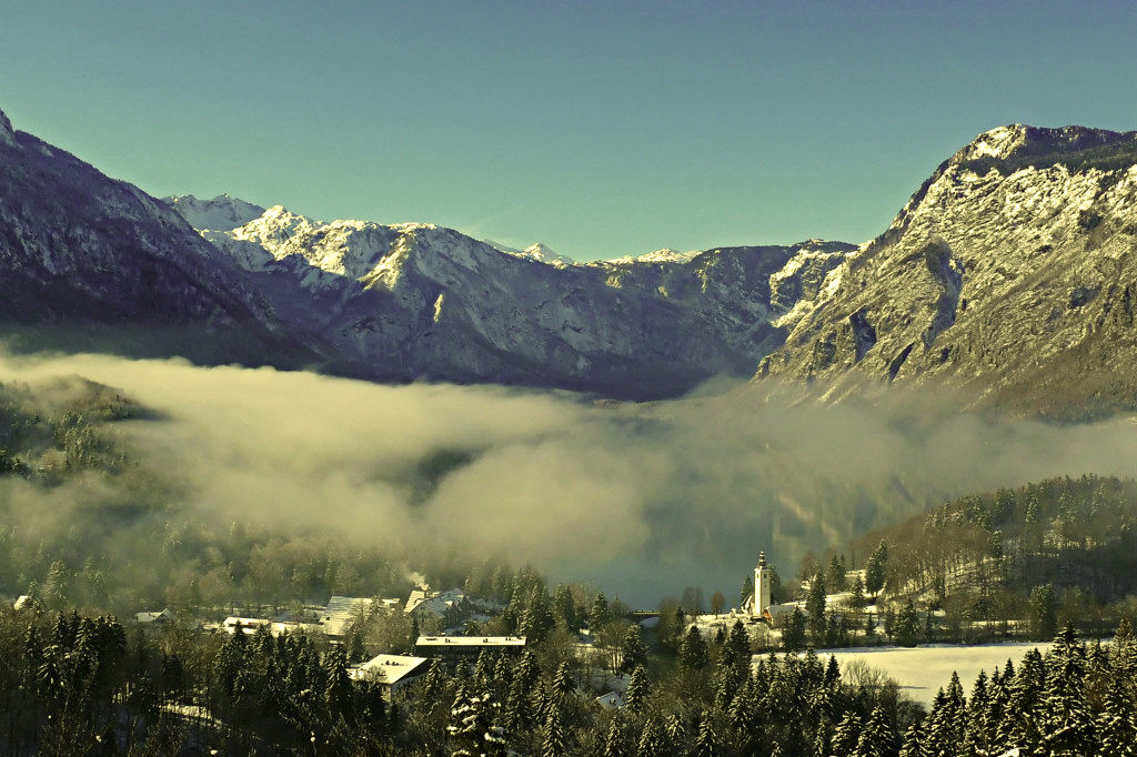 Beautiful landscape photo. The mist covering the town looks very nice. To me, the composition and enhancements you made are very nice. I do not like the extra blue in images; hence I tried the yellow filter available in photoshop and increased a little green color in highlights. The resulting image is given below. I do not know whether you like it. |