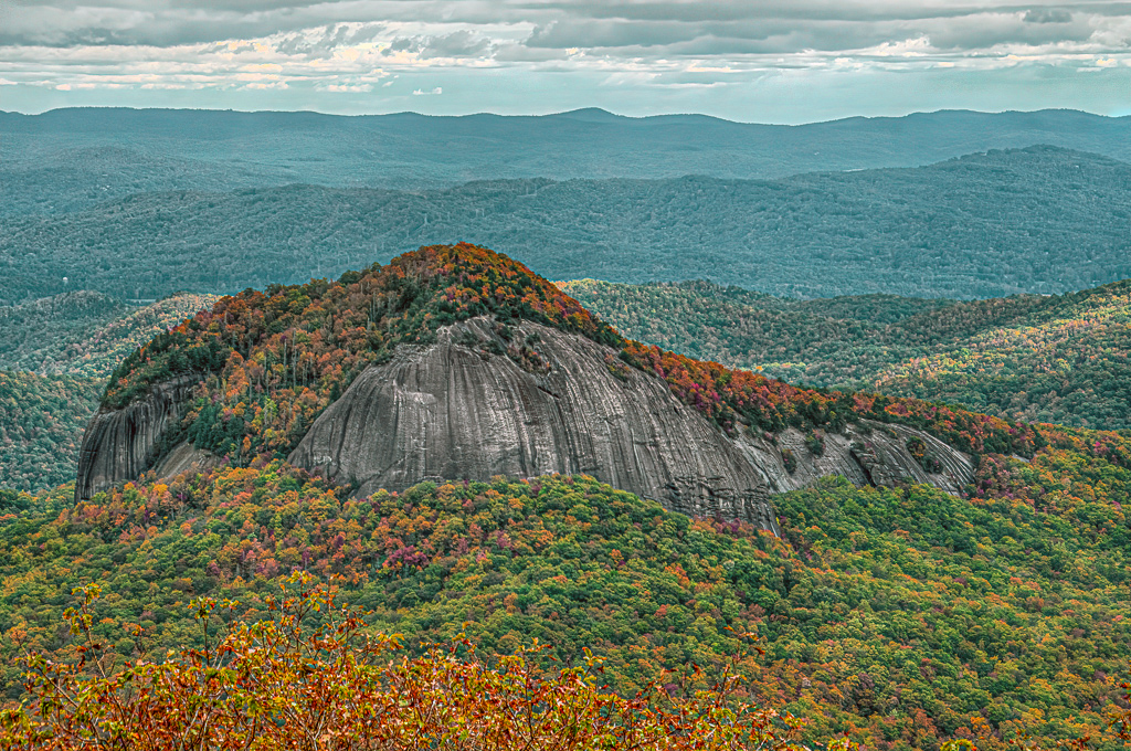 Interesting landscape. The rock, layers of mountains and the dramatic sky are giving a nice composition. To me, there blue color is strong. May be a little hue adjustment will be better. Tried a quick one with hue and saturation of blue. |