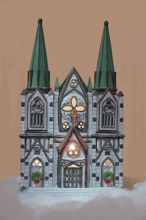 Very nice image. The image is sharp and has lighting effect. The lines in the background, to me, appeares to be a distraction. To me, instead of adding light in the front of the church, a rendering of lense flare through a small window above the gate will look better. A quick trial is added below. |