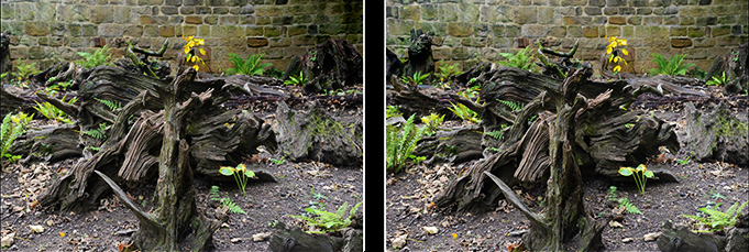 Nice 3D image with great depth. I liked the composition. Image is a little dark and the foreground details are missing. Steve has brought out details there, but other portions became over exposed. I tried further adjustments in that file. I selected about 25% of the lower portion using lasso tool with feathering of about 50px and then reversed the selection. Then adjusted the levels. This file was then processed using Topaz Denoice AI and Sharpen AI for finer details. The resulting image is given below. |