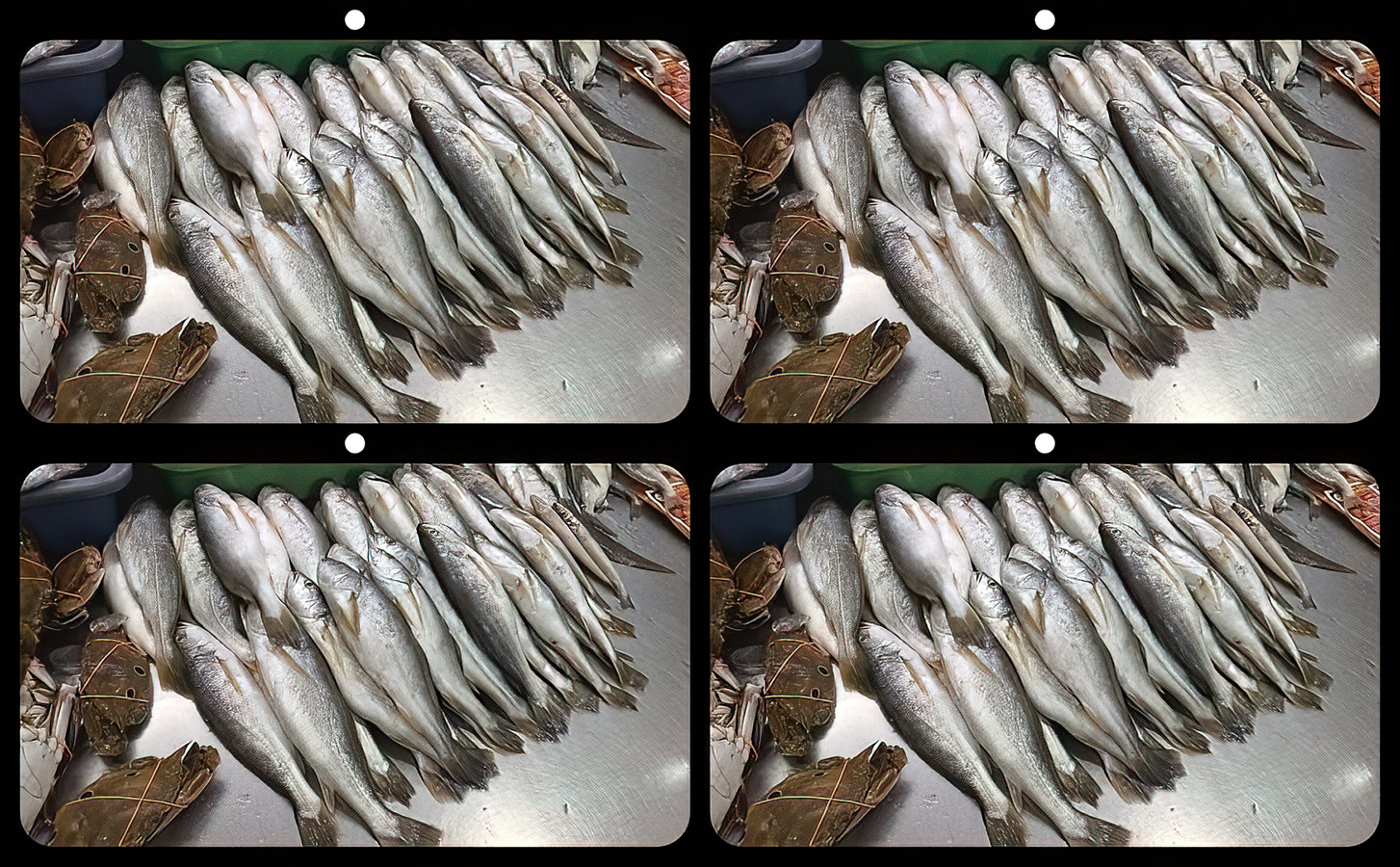 Nice image. The fish arrangement is good. The crabs add interest to the image. There is no window violation. To me, the sharpness need to be increased. I just tried sharpness and noice using Topaz. The resulting image is given below. |