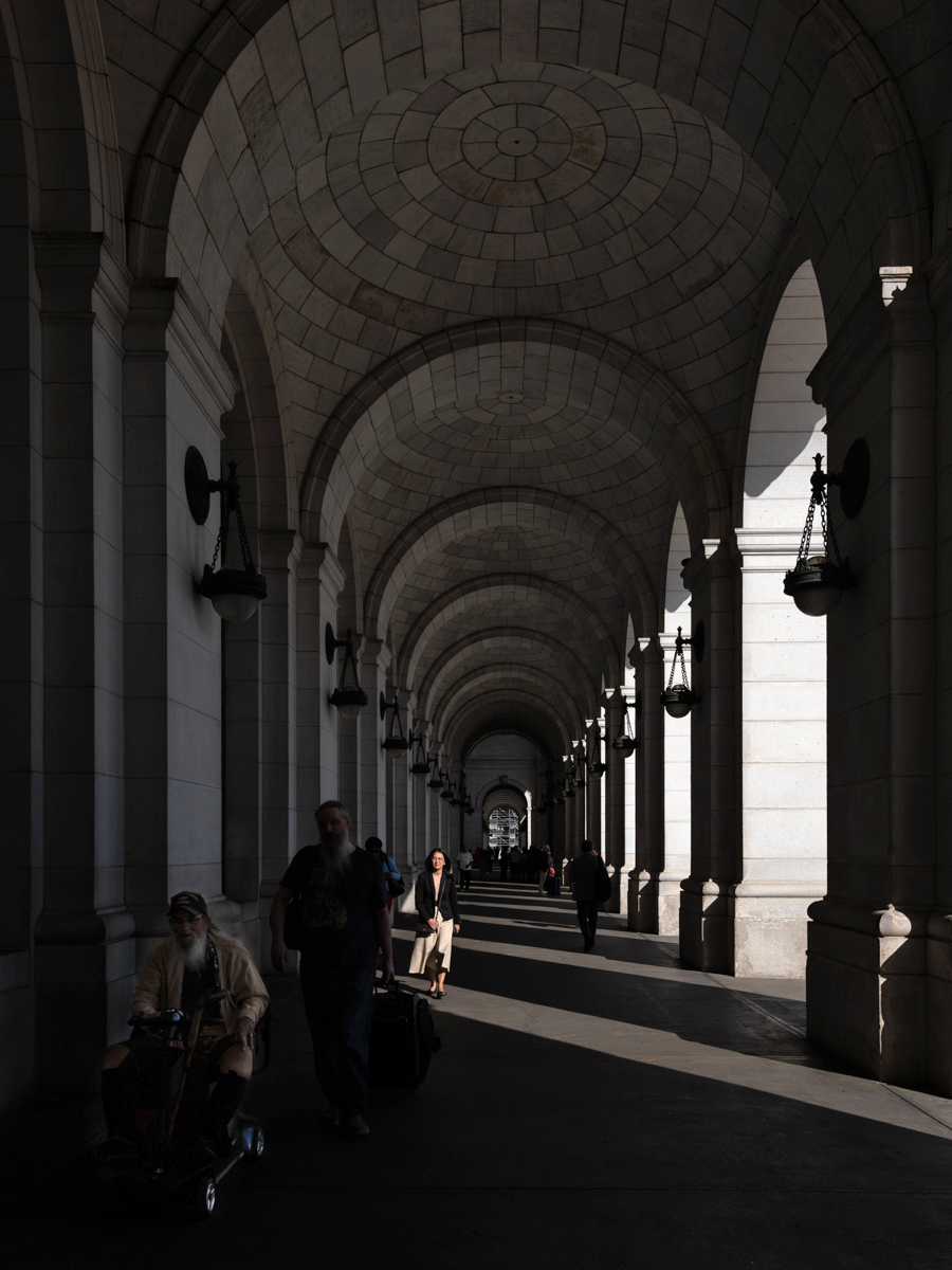 Great shot and location. The image is sharp, where needs to be. The details in highlight area were captured well. To me, the first person in the image add more story to the image. He is in a wheel chair, but it is not clear. If you can selectively adjust the shadows for that person, it may look better. I just tried a quick trial also increased the shadows overall too. |