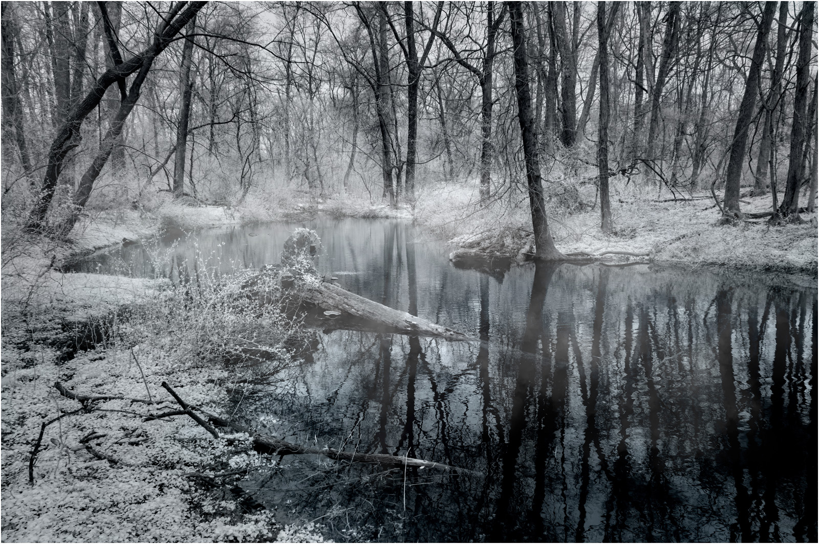 Trees are my favorite subject to photograph and create my own art. They are everywhere and are most often ignored by people, especially when they are not in bloom. You created your own art with the capture and post work. You worked with a mundane scene to create a unique presentation. The tree in the middle stands out enough to create a center of interest. The combination of effects produced a style that may work well for some, but not for others. The image draws my attention and kept me looking at it. I'm not sure about the inversion, but this is so subjective. Keep working with trees. They are great raw materials for artistic expression.