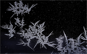 I prefer the B&W version overall, but only because I think the original color needs a slight contrast increase. The B&W is very contrasty, leading to more "stars" in the image, and I like the lesser amount in the color. The only real color in the image is the blue, which could be left in or added to a B&W version. I like the blue effect, as it increases the feeling of cold. I would like to see the very bottom selected with high feathering, and using more contrast there to eliminate the soft frost effect on the very bottom. I tried this, adding more contrast and lightening, but masking out the effect in the stars. See what you think. |