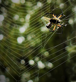 I like the action of the spider. I agree with Jose about cropping for more impact. Cropping also has the benefit of reducing the amount of highlights showing. I also looked at cloning a few more, so they are not as prevalent. ( I think that merely darkening them will make them look unnatural.) The spider needs a tad more light for visibility, so I brightened it only. See what you think. |