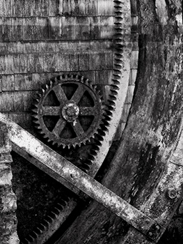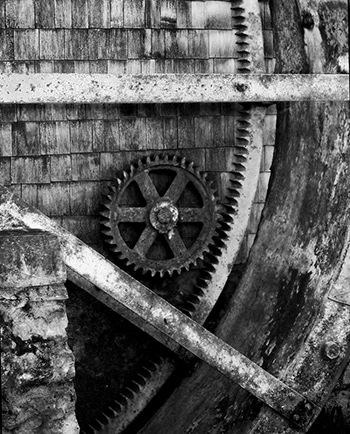 I know, I am getting a little over board with suggestions here, but you might also consider cloning out the bar, so you can crop it where the cog is not placed so much in the center (although I don't think that is so bad). I used a combination of the Content Aware Fill in PS and the Clone tool. (There are a few artifacts remaining that I did not take the time to fix.) |