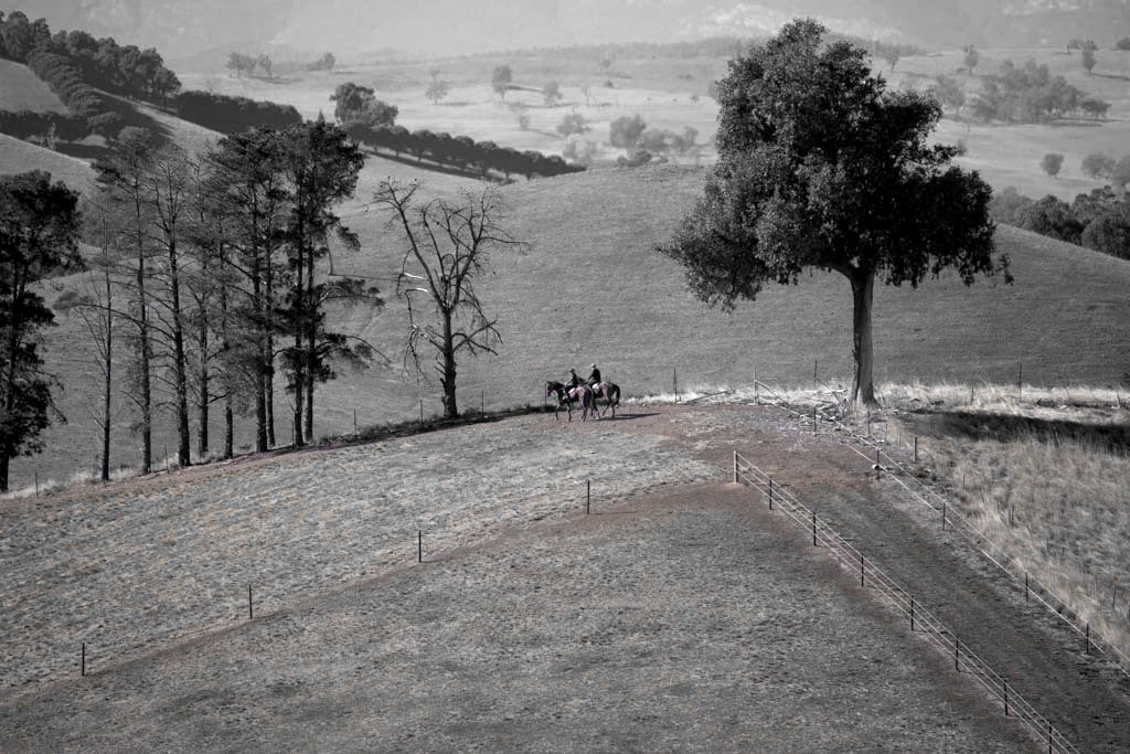 I'm a fan of selective BW -- leaving just a bit of one color. In this case I think leaving a bit of brown/red, which emphasizes the earth tones and the chestnut in the horses, and helps to make the story about them rather than the beautiful landscape (which was captured beautifully). |