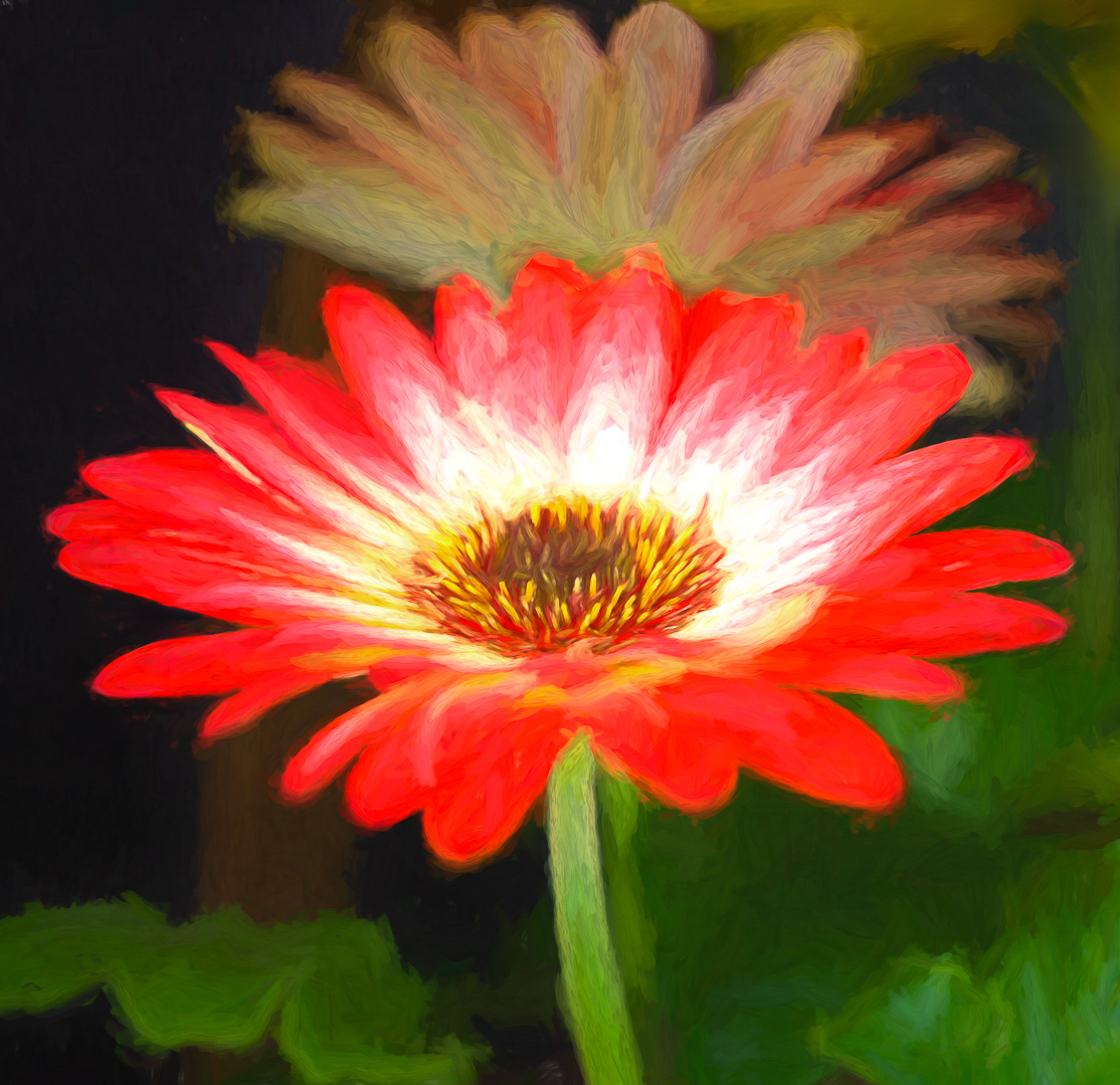 excellent job! I have always liked a well done painterly affect. The one thing I might suggest would be to bring down the brightness of the background flower. Currently I find it has too much pull.