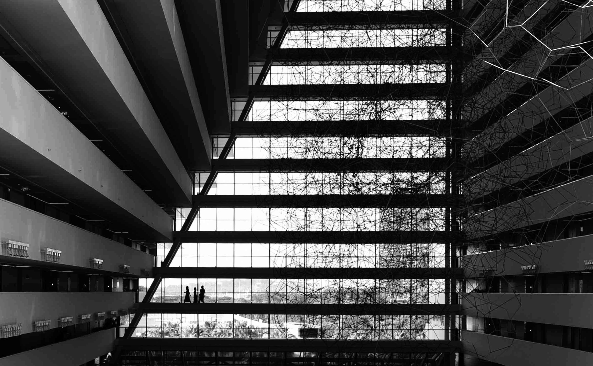 This was one was fun :-) I like the way this feels, with the strong lines that bring your gaze in from the sides to the window and the group walking. I tend to agree with Dorinda about needing to crop the bottom.