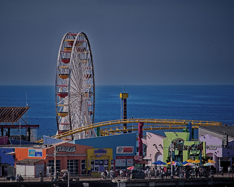 Fun image, very dynamic colors. I agree with cropping the left side and bumping up the overall brightness. |